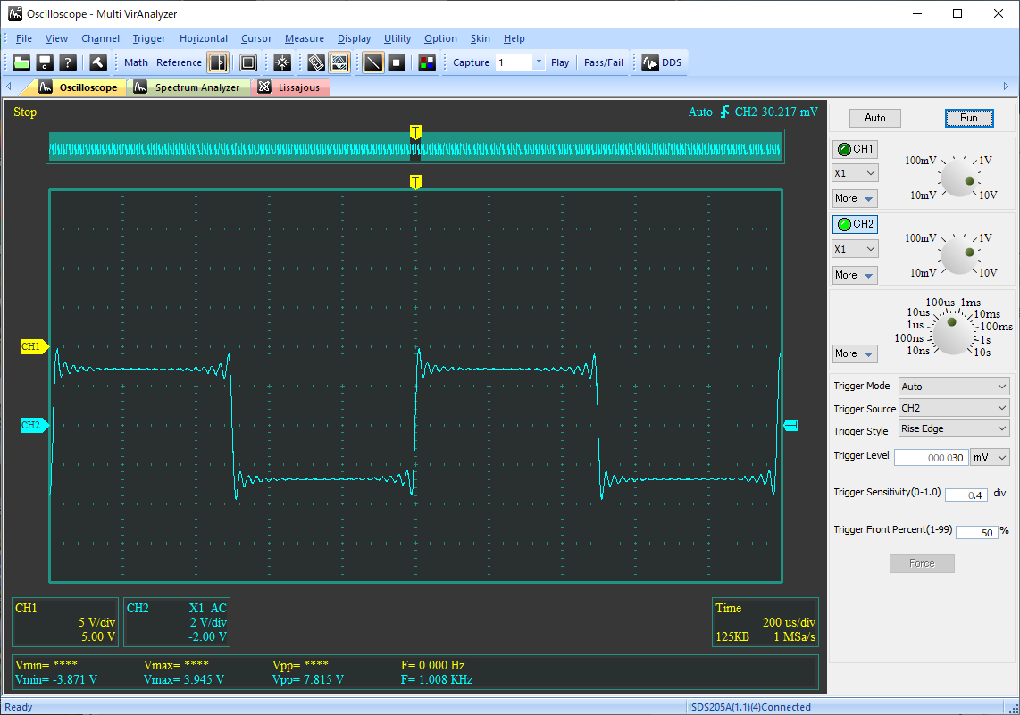 OPA2134使用。1kHz方形波入力。デジタルフィルタは〇〇〇
