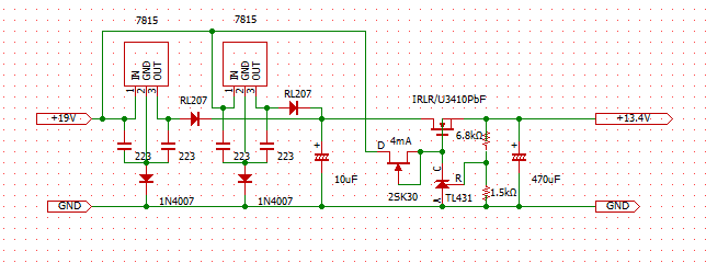 電流容量を稼ぐためにNJM7815パラレルで使用した。